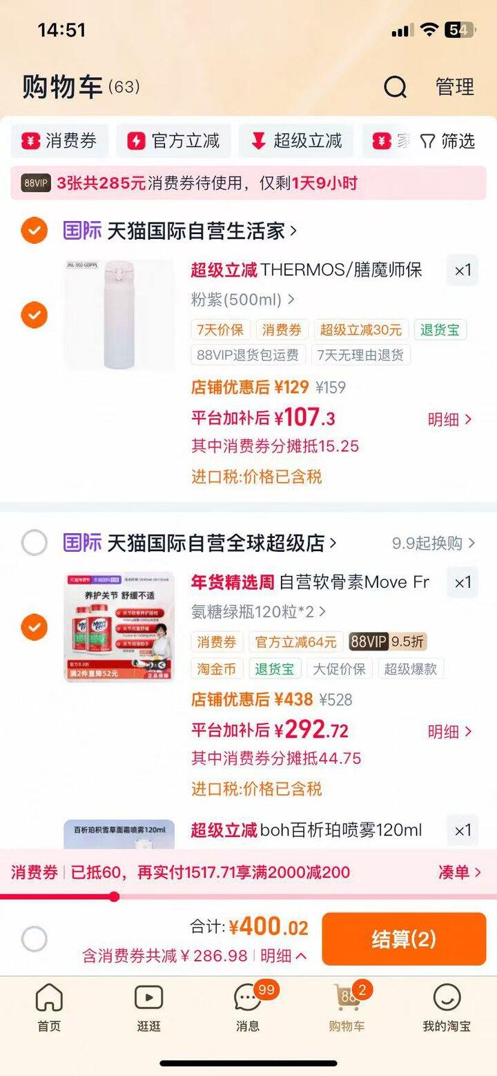 ⚠️按下面这个顺序加购,先过淘金币再过直播的话淘金币只能抵扣4块