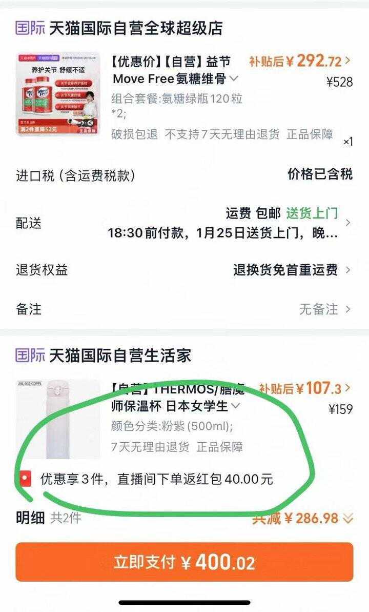 叠加88会员消费券480-60,Move Free氨糖维骨力软骨素关节绿标氨糖120*2到手292.7,直播加购可以再返40元直播红包,提交订单的时候可以看到,相当于到手252.7,折1.05/粒,很好的价格了!