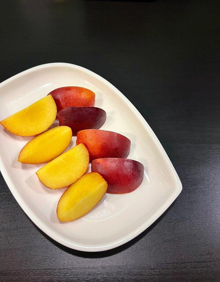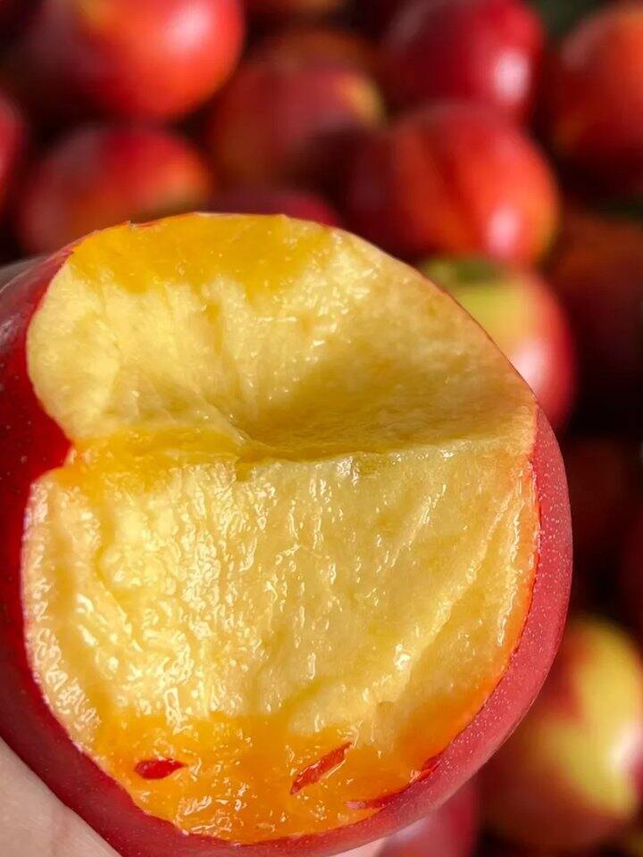 ✨ 耀眼金黄,颠覆视觉: 告别传统油桃的粉白!通体呈现饱满诱人的金黄色,果面带有天然红晕,像被夕阳镀上了金边,颜值即正义~
