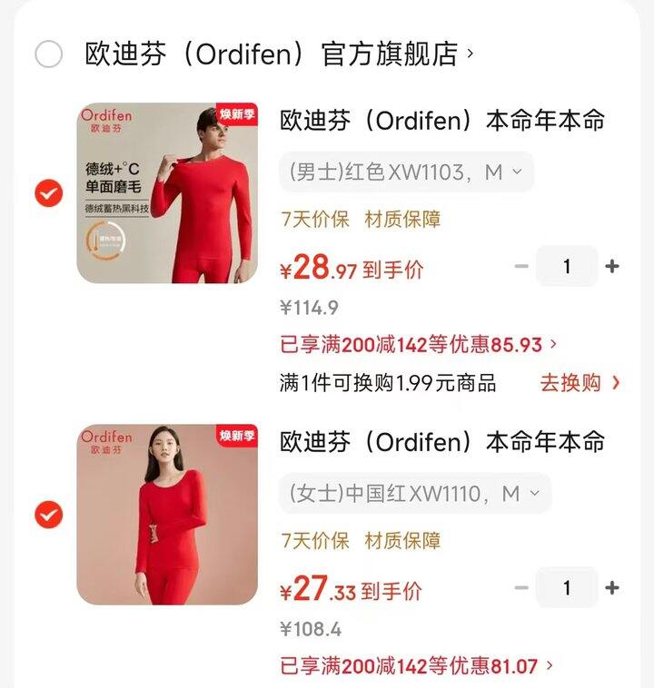 欧迪芬本命年保暖内衣