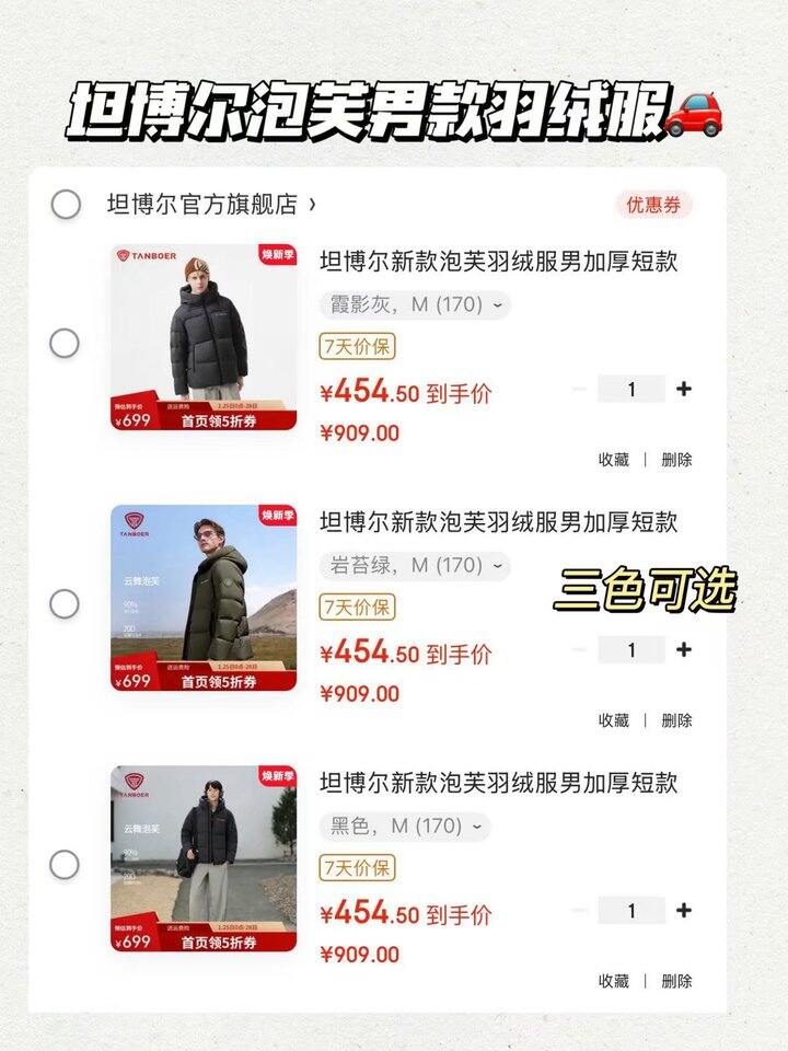 389.5元坦博尔男立领舒适百搭休闲羽绒服