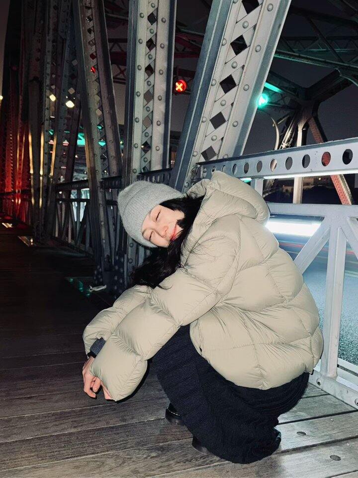 衣服版型我蛮喜欢的,颜色我也喜欢,买了同色系的羊绒衫还没发货。鹅绒服很轻很软,防风一般。我喜欢这件衣服是磁吸的扣子(我会被小细节打动),还喜欢侧面后背的弧度,比龟背好看,又比直筒的有设计感。直播中穿了黑色也很好看,如果买不到绿色我会买黑的。