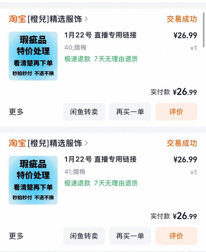 来种草一个直播间,这周在他家买了三条加绒加长的牛仔裤,都收到了非常满意,所以来种草一下。 我买的这三条都是26.9包邮,昨天他们还直播29.9两条,但是默认有大瑕疵的款,我没有买,不知道瑕疵情况。 第一条收到的蓝色,我妈取快递时候以为是卫裤,很软,拆开才知道是牛仔裤,很舒服,加绒厚实但很软。去年在另一个直播间买的加绒牛仔也挺好穿的但比较起来就是摸着有点硬。 刚刚收到黑白各一条,都是给我妈买的,直播间蹲裤子尤其是我们想要加长的挺难的,就直接拍了两条看看合适就留不合适就退,黑色我妈嫌太长了,我穿也可以就留了,白色我妈穿刚好,她也很满意,白色绒更长一点,面料摸着就是很棉很棉的。 看图片名字去淘宝直播搜就行,现在刚好没在播不好发链接了就~ 最后的最后 打个广告 本人咸鱼主页在最后一张图片 有些尺码不合适的衣服 甲油胶啥的 可以去看看哈 在售的十来个链接报路口全都有优惠[鬼脸]