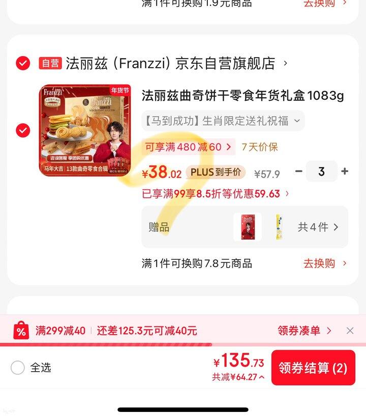 法丽兹 曲奇饼干零食年货礼盒1083g