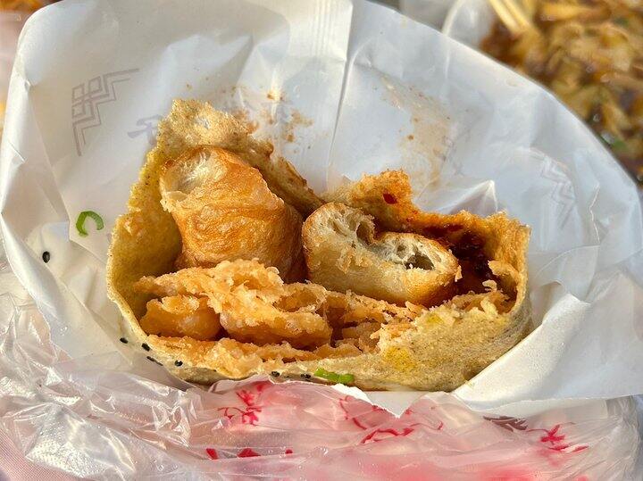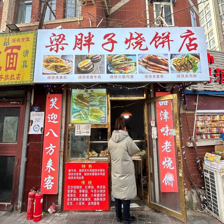 天津酷爱吃饼,小烧饼夹料吃,大饼据说可以卷一切。这家店是圆形的小烧饼,最火的是烧饼夹素肚,素肚是那种种可以做成辣条的豆制品,味道也像不辣的辣条,调味确实不错,我还打包了几个回来第二天吃☺️