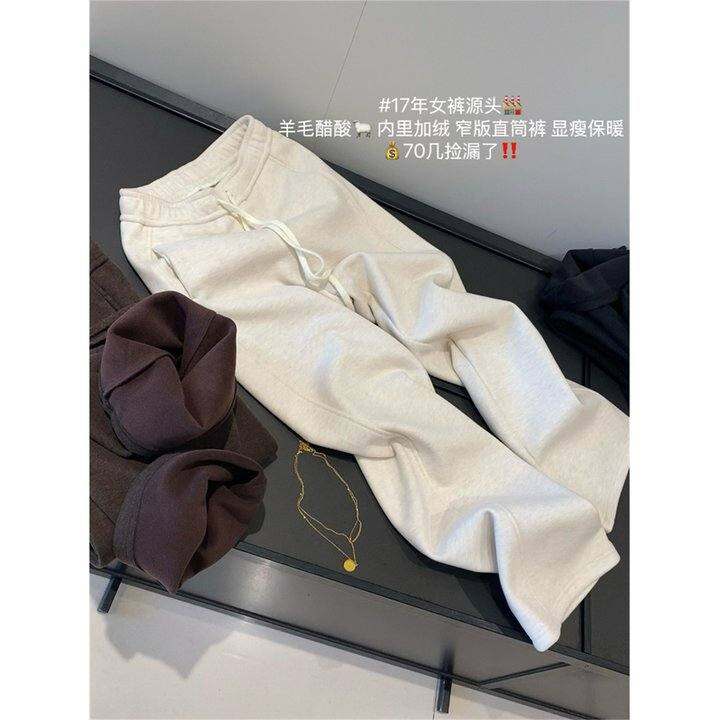 IN BLUE 羊毛醋酸!秋冬内里加绒显瘦保暖窄版直筒裤休闲裤卫裤女