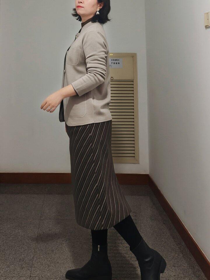今天穿一件很有趣的上衣,可以当开衫,也可以扣起来穿,还有点像件薄外套