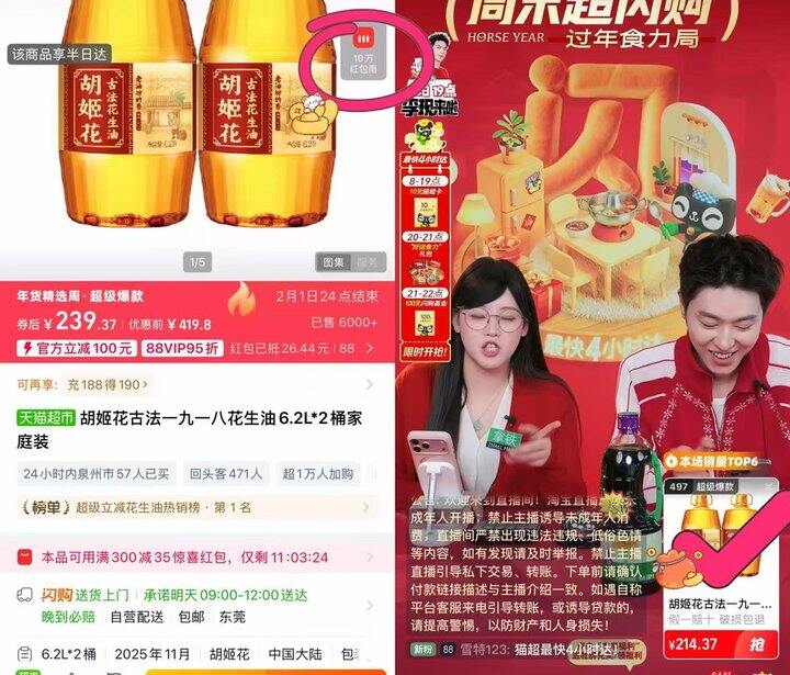 速度去‼️胡姬花6.08L💰100‼️ 手慢不叠加‼️‼️囤货送人都🉑