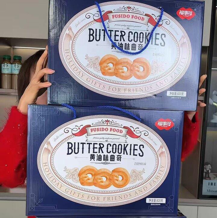 福事多曲奇饼干蓝色礼盒820g*1箱