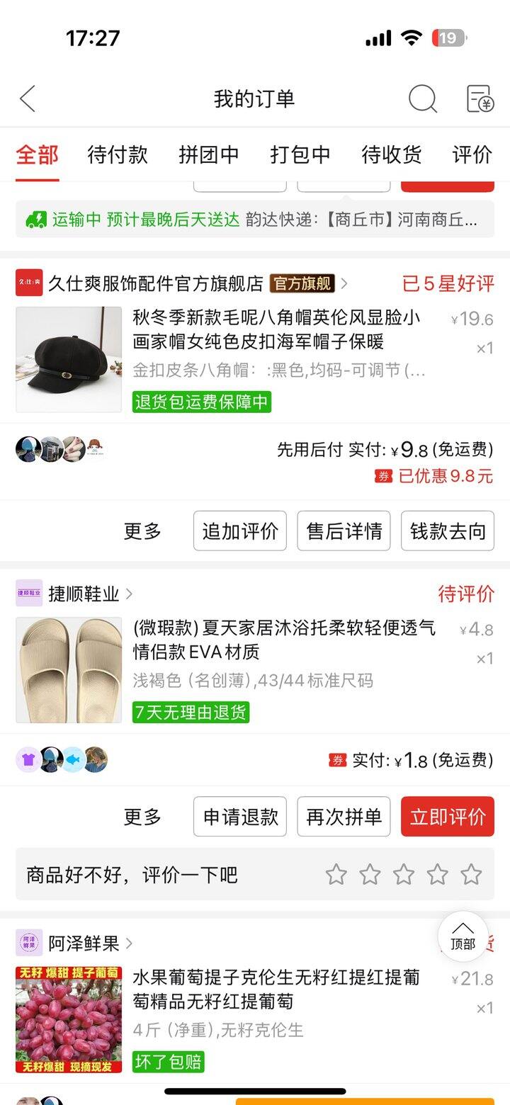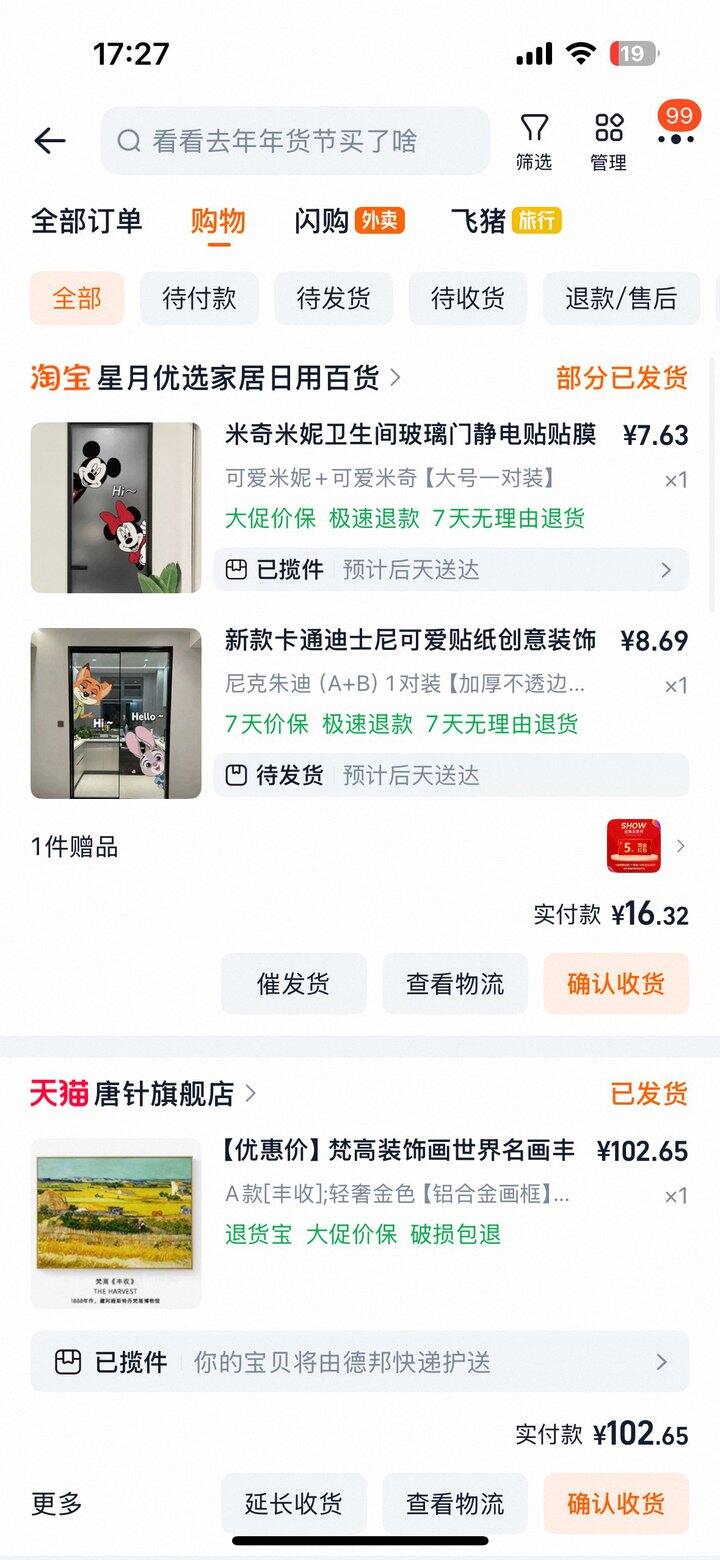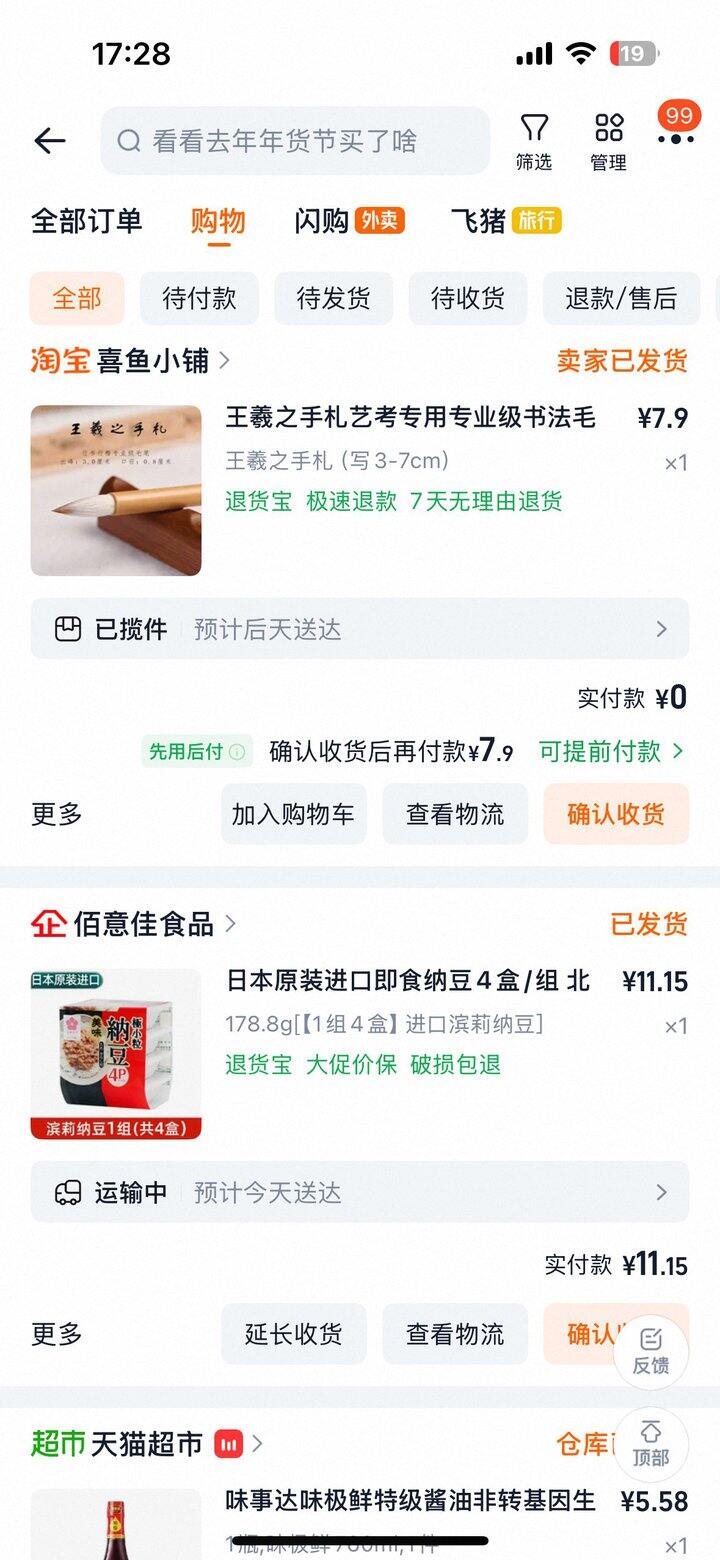 前面都是pdd,最后三张是淘宝的,基本也是用了省钱卡打7折这样子,省钱卡实在是太好用了🥹🥹🥹