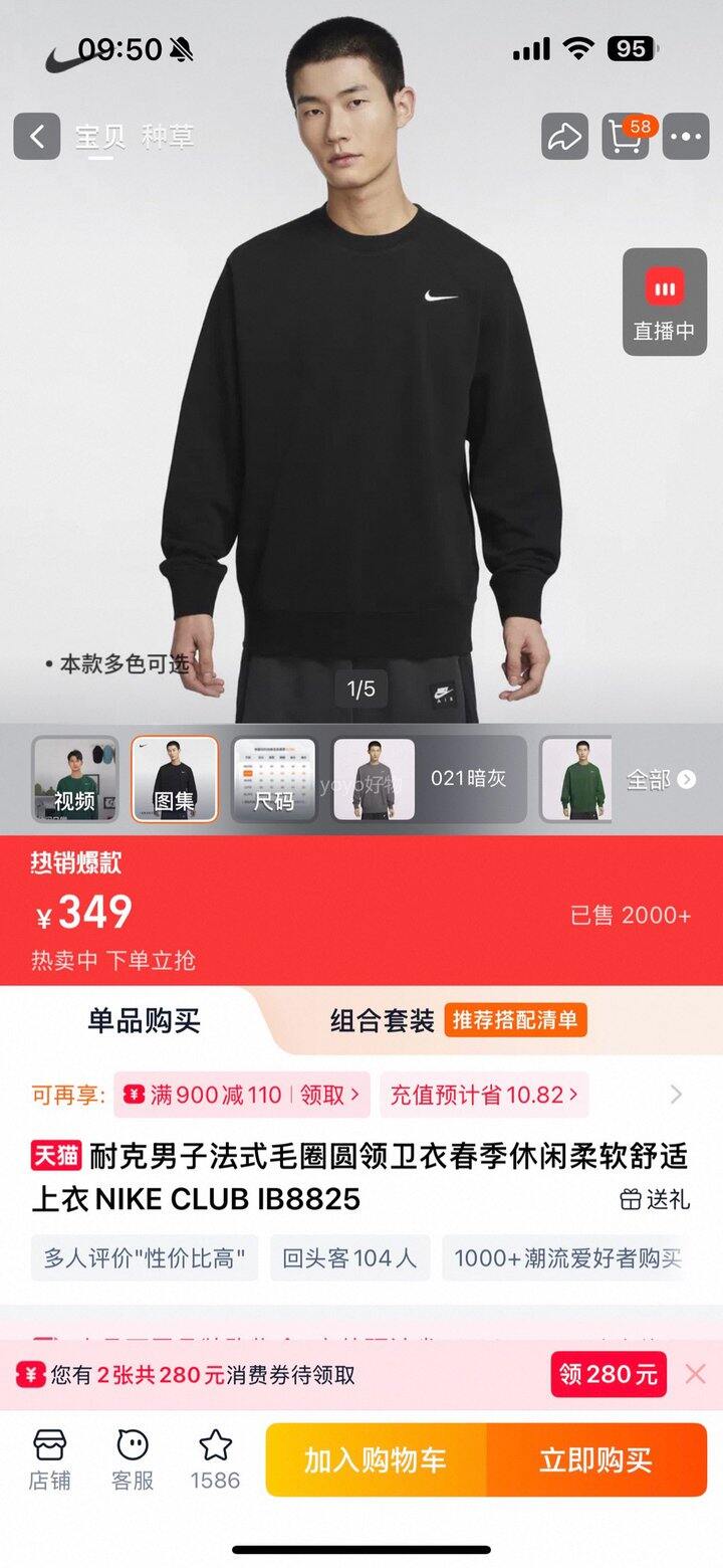 Nike加绒卫衣!💰79