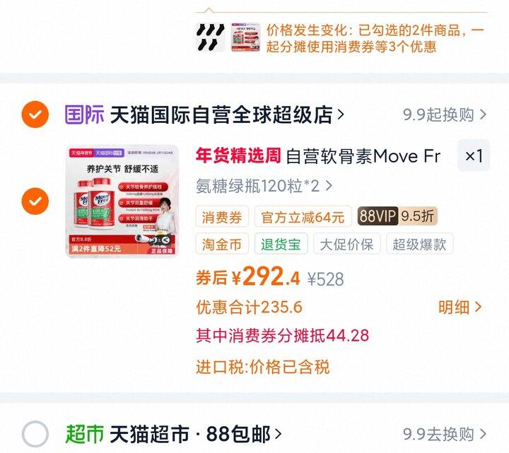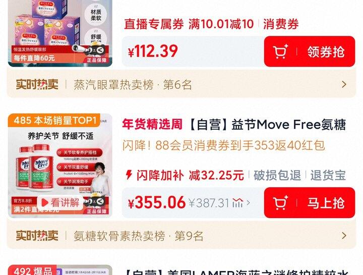 1、益节Move Free氨糖维骨力软骨素关节绿标氨糖120*2:https://m.tb.cn/h.7perlKt弹21.1礼金
