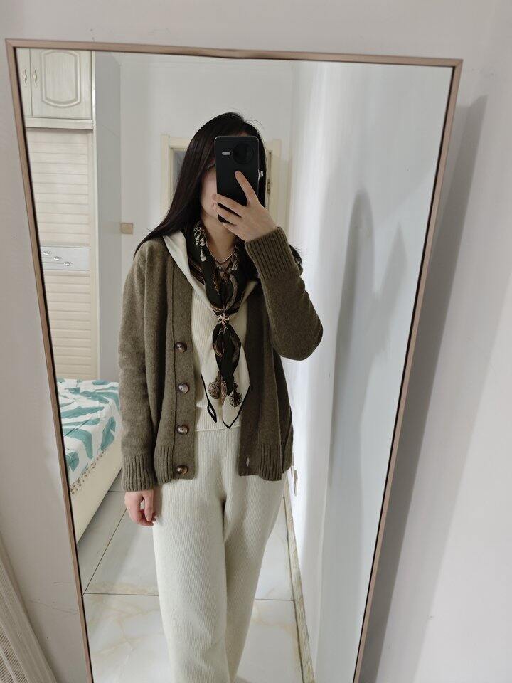 军绿色羊绒开衫