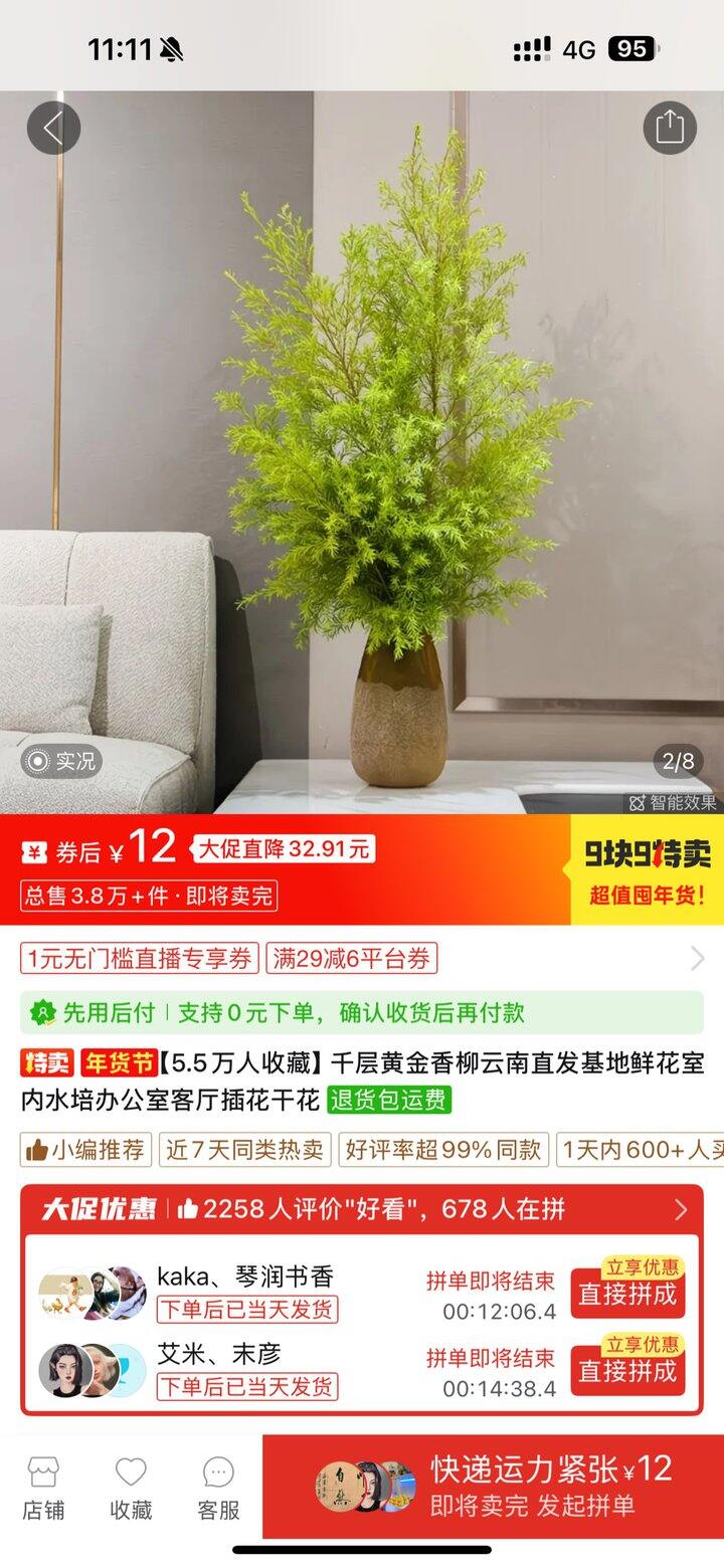 新年不知道家里买什么花的可以考虑这个,我买的这种黄金香柳,很茂盛,应该是树枝哈哈哈,好养,价格便宜,色彩艳丽,很有新年氛围。