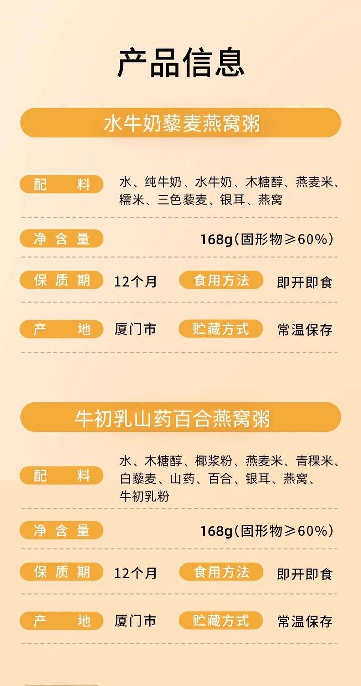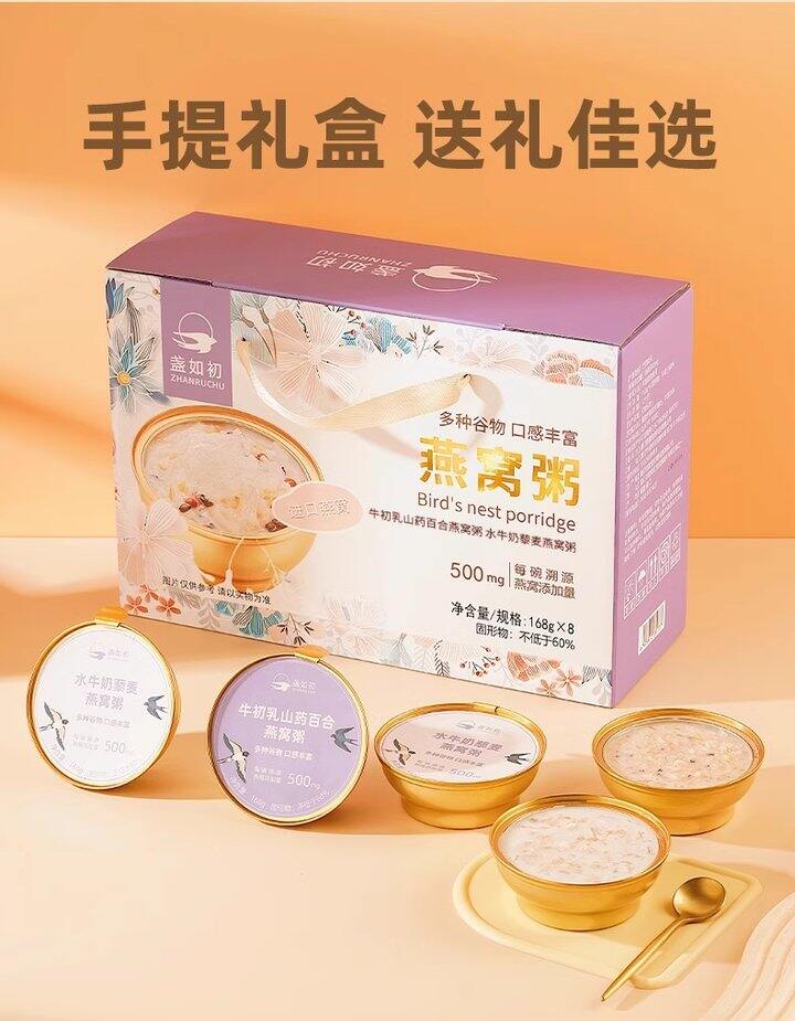 【8碗礼盒装】盏如初燕窝粥(规格:牛奶乳山药百合*4+水牛奶藜麦燕窝粥*4)