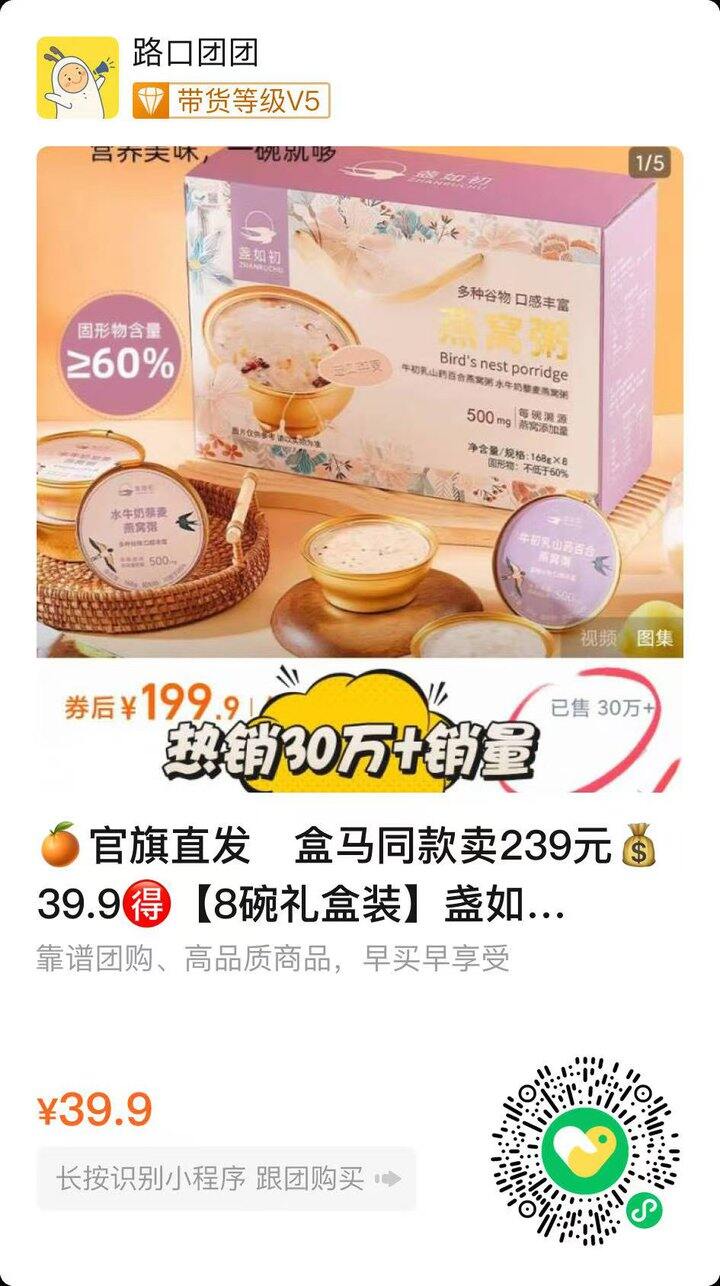 官旗直发 盒马同款💰39.9🉐【8碗礼盒装】盏如初燕窝粥.礼盒包装,自己吃或是送人都很好~ 大家可以官旗看在售价,这个真的很划算,抓紧囤~