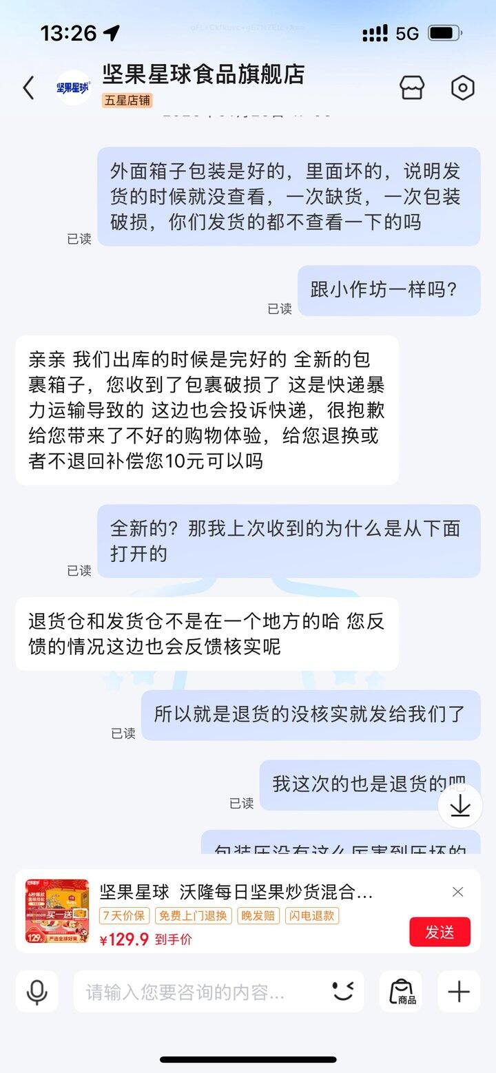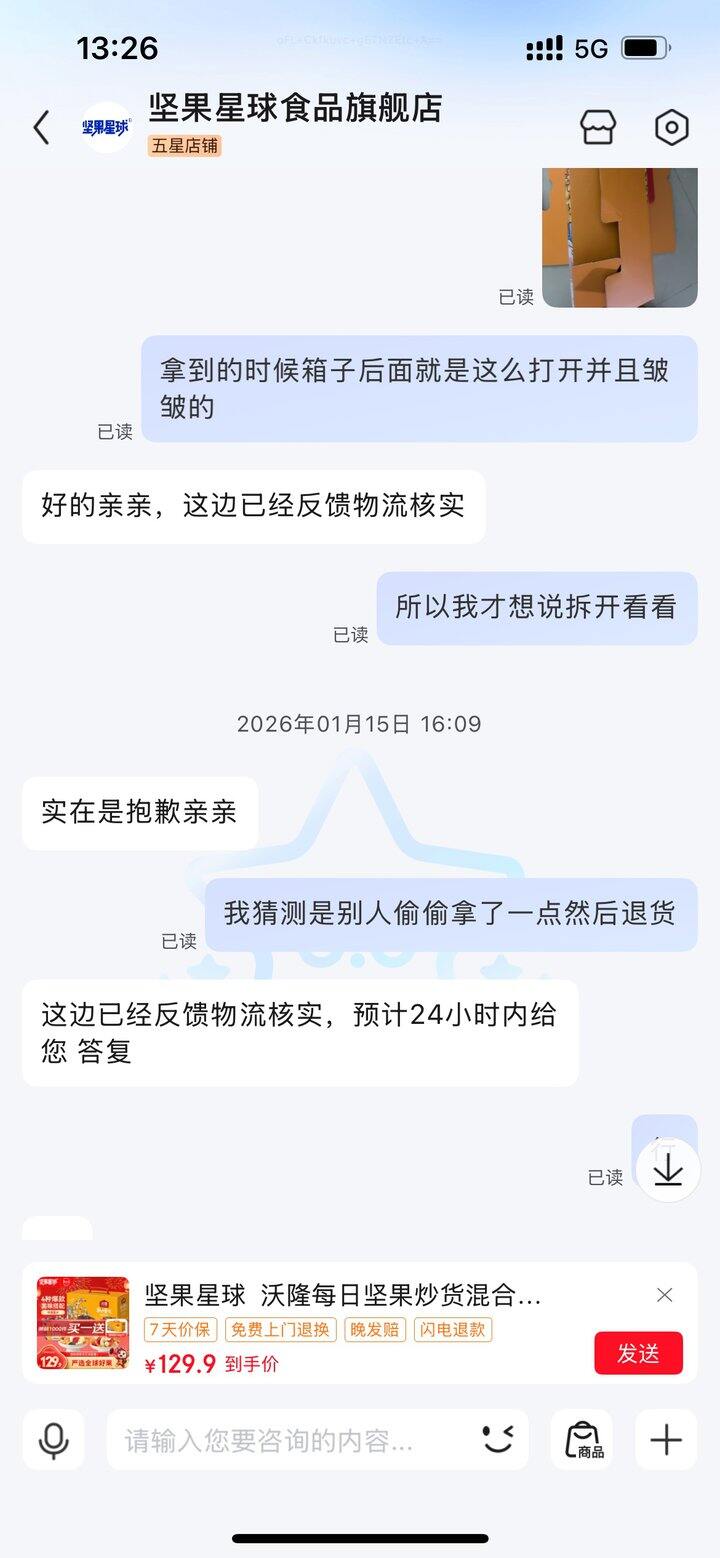 过年购入了几个牌子礼盒,现在为止只有这个是出了问题的,首先第一次购买的时候我买了两盒,然后其中有一盒后面是拆开了的,然后我就留了个心眼(平常送人的礼盒我都是懒得拆开看的,因为比较相信大牌子)。因为里面是独立包装的,所以我就拿出来一包一包数,结果几乎少了三分之一的量,然后我就跟客服说,然后就让我换货,结果换货的时间一般比较久,换了十几天之后终于拿到了,结果这次是礼盒的包装破损,说明他们家发货前根本就没有提前看过,随随便便就发货了,然后我就对这家店产生了信任的问题,我就直接给退货了,真的是浪费时间。🙄