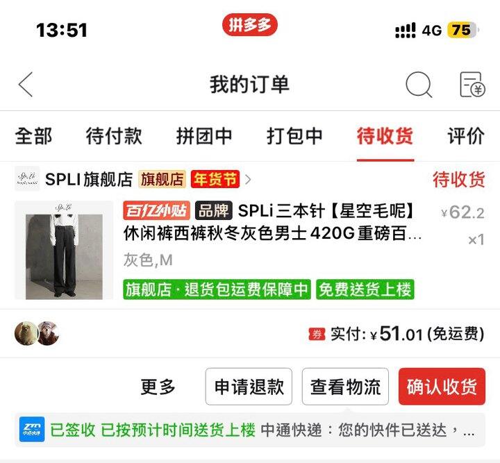 这是一条50块的男裤。