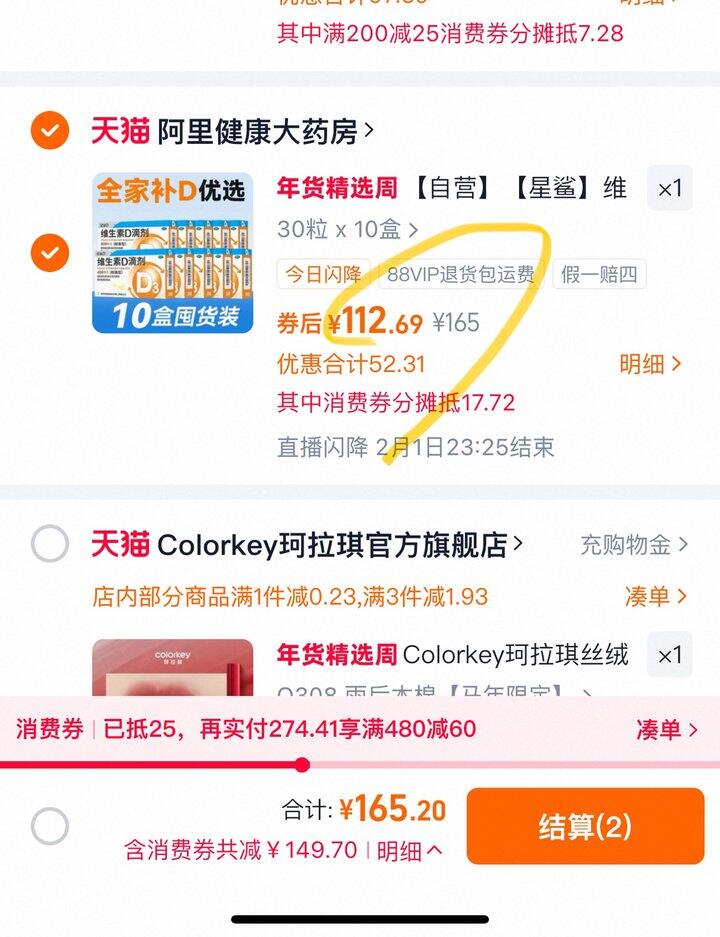 右上角直播间加购,拍30粒×10盒选项