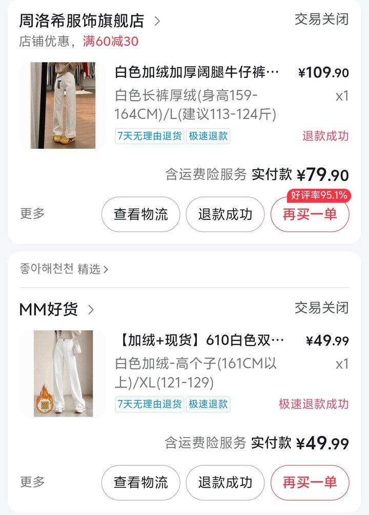 我现在纠结要不要买条不加绒的,加绒的尺码对我来说腰腿都富余。