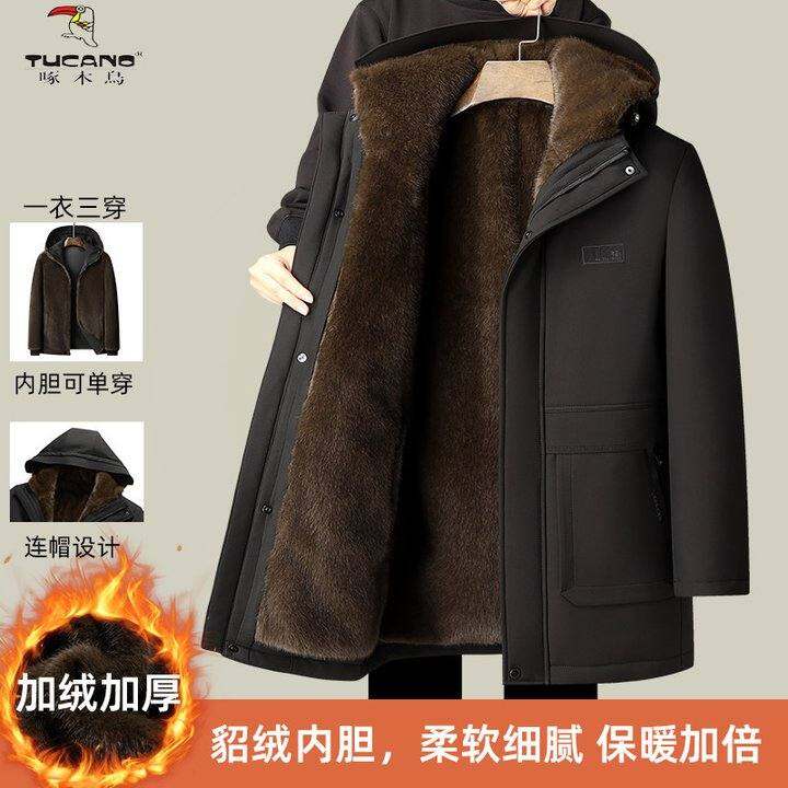 【内胆可单穿】啄木鸟男士皮草加绒派克服水貂绒加厚爸爸冬季外套