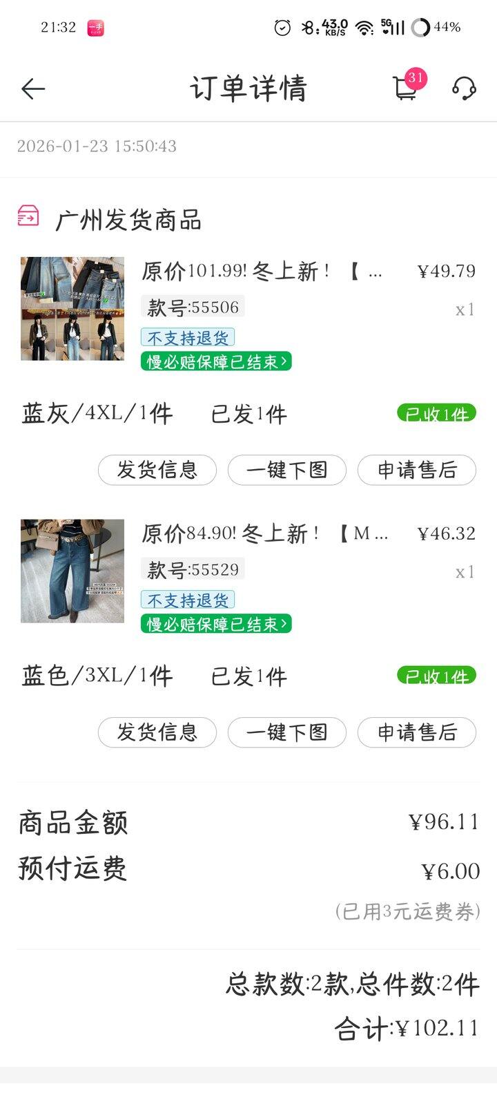 一手买了两条m8的裤子