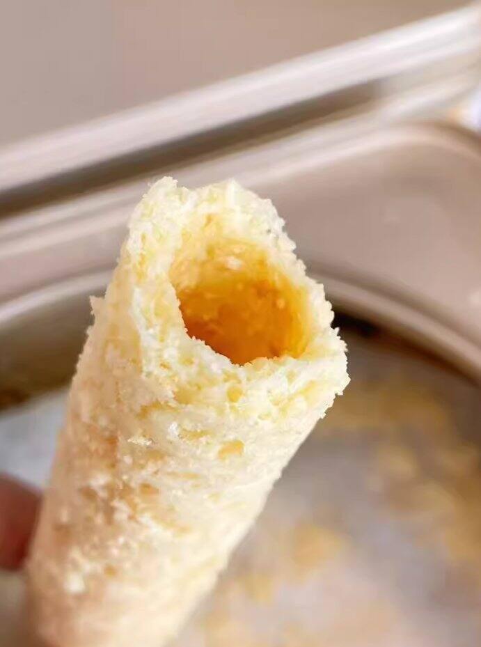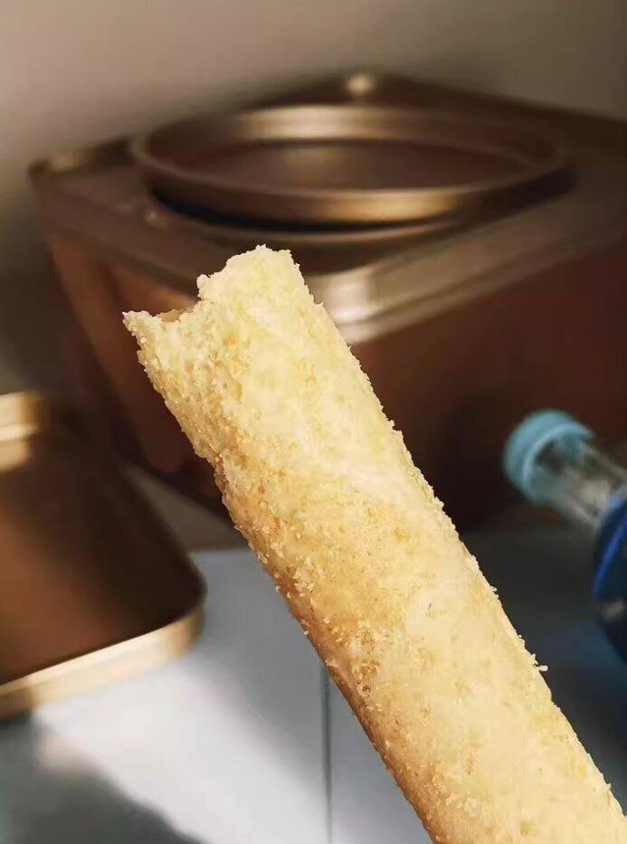 超级酥软,轻轻一咬,蛋卷就一层一层脱落到嘴里,这应该是作为鸡蛋卷的标配属性,但是果佳这款黄油鸡蛋卷不仅做到了这个,还有一点是我最喜欢的,就是她没有加起酥油,没有加食用香精,靠的就是黄油,鸡蛋,乳粉等带来的香味~