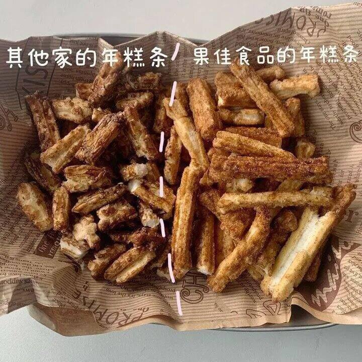 👉小贩去年买过另外一款也挺热门的年糕条做对比 (左边为其他家产品,右边是果佳食品)