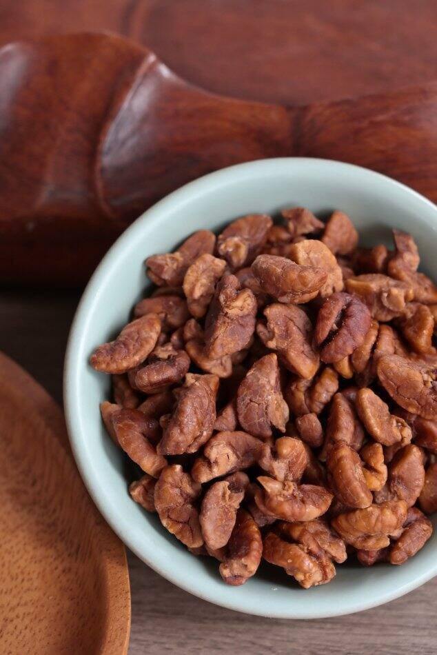 为了尽可能保留山核桃仁的原味我们把调味料减少到只有少量的盐和糖没有其他增味剂