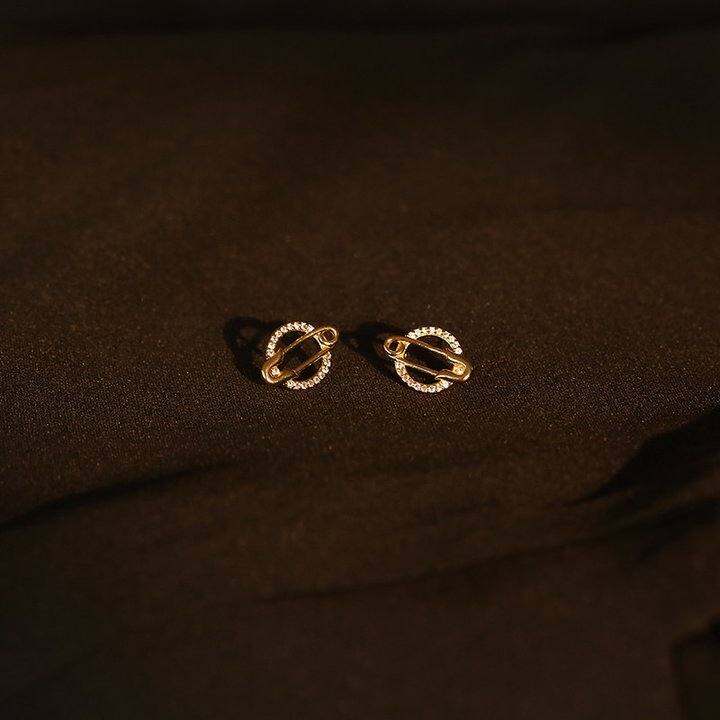复古锆石行星设计感耳钉时髦镶钻回形针别针圆形精致小众轻奢耳饰
