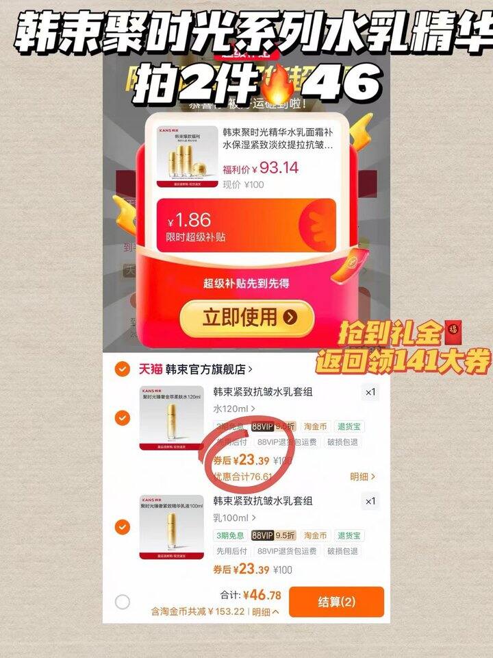 韩束聚时光水乳精华!💰23