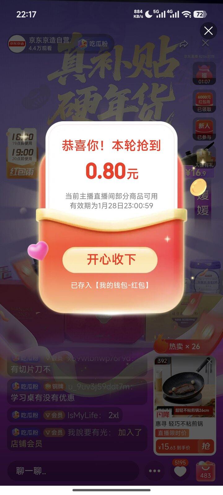 ③一些直播间会有观看红包和红包雨