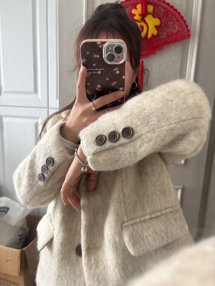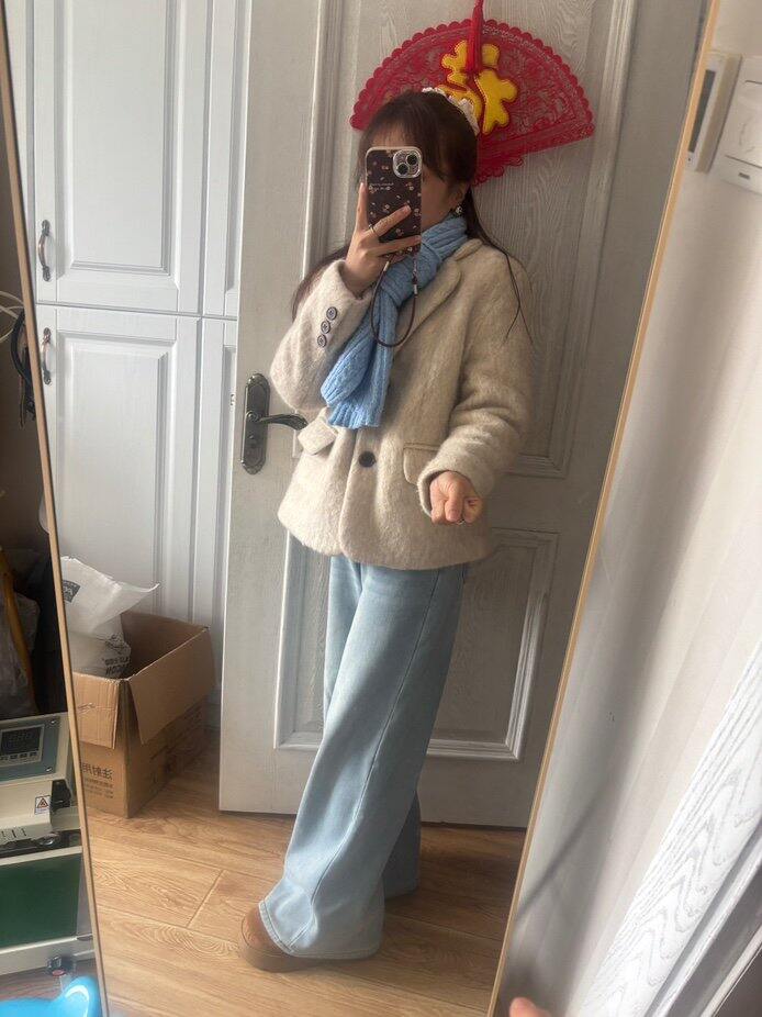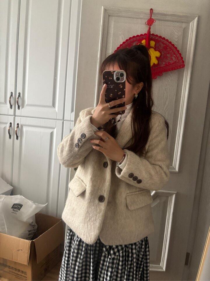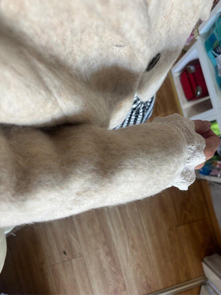 不是像毛呢那种压的很实,有微微毛的感觉,可以看下细节图我试穿的最小码,衣长55袖子也刚好,肩膀更是合适的不行,想要宽松一些可以拍大一码,昨天穿了一天袖口也没咋起球,微微毛应该是会起一些的要用专门的那种刷子拿去梳。这个搭配裤子或者裙子都好看的,贴了问了商家怎么清理这件衣服的提醒,理性种草