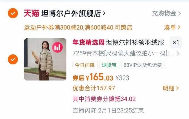 史低!💰156坦博尔饼干衬衫领羽绒服