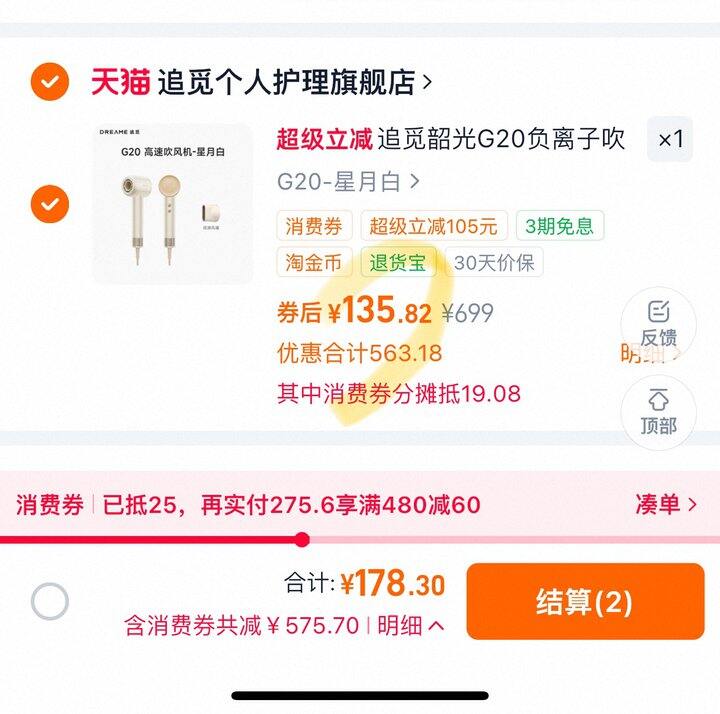 追觅韶光G20负离子吹风机丨新低131