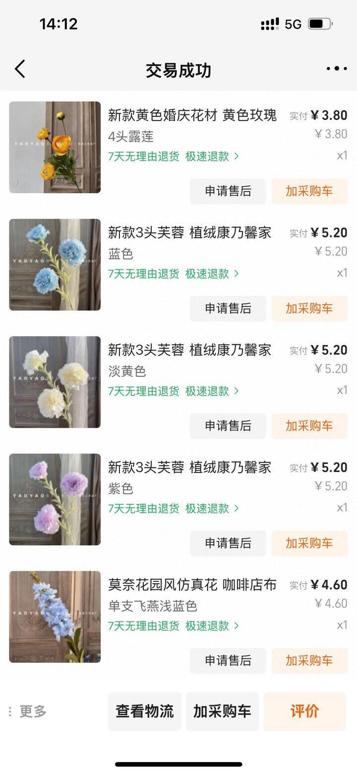 推荐的一家店,买了很多,平常拍照也能当道具,收到质量不错,选了一些插进花瓶。