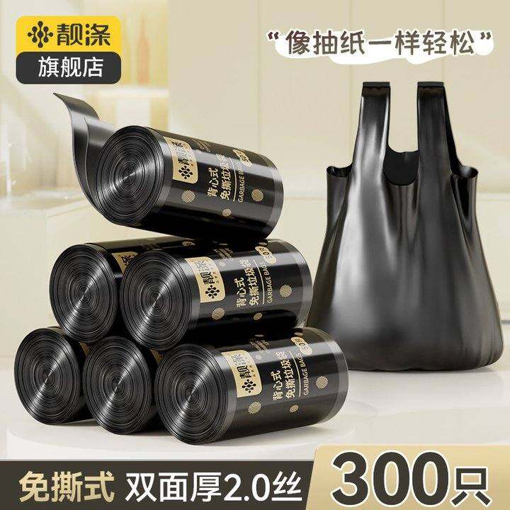 靓涤垃圾袋家用手提式加厚实惠装厨房办公室用免撕式背心黑塑料袋