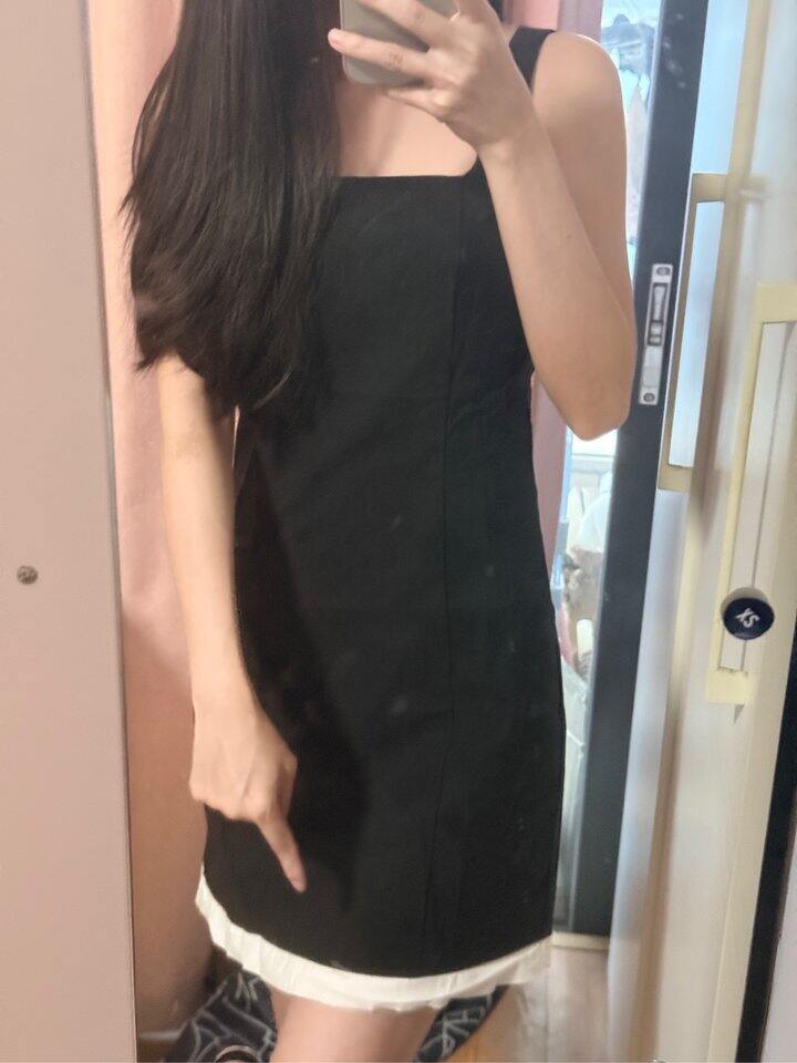 竟然只有以下2件不用退换货。但是灰色的T恤最小只有S码。 黑白拼色裙的白边有褶皱。[大哭]