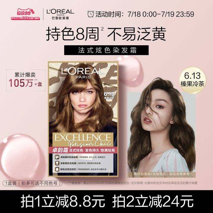 巴黎莱雅卓韵霜染发剂女榛果冷茶橄榄茶棕赛博蓝黑薄荷青棕染发膏