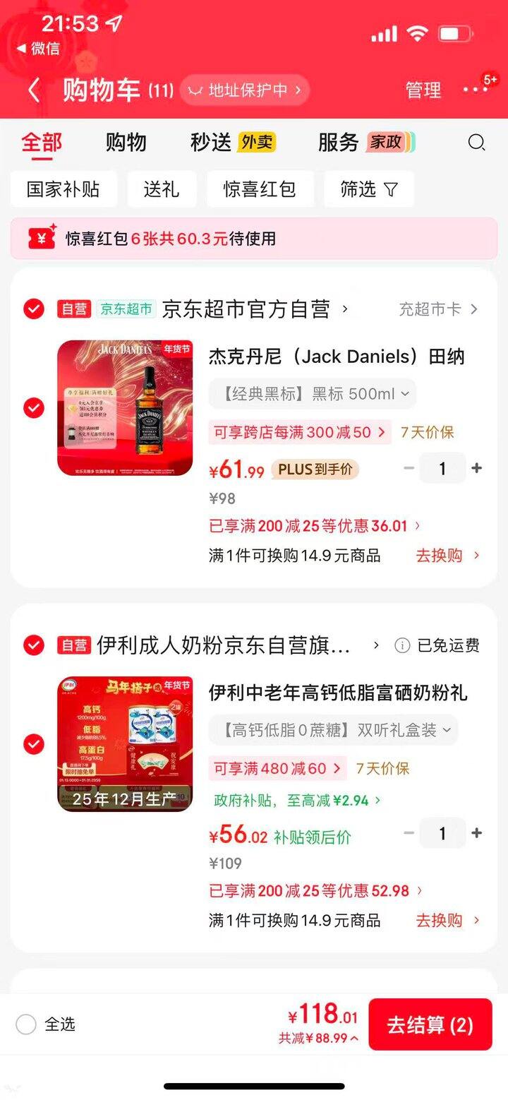 实付56左右到手,前面没有买到礼盒的,可以拍这款,需要叠加国补哈
