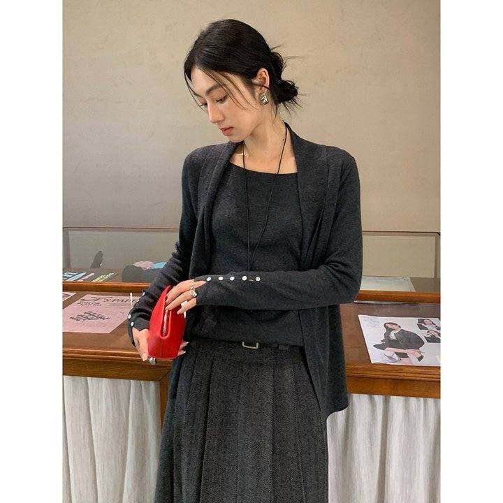 FONE设计感围巾披肩假两件羊毛针织衫女冬季韩版宽松显瘦百搭上衣