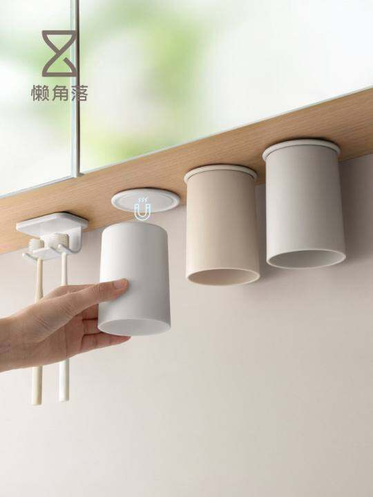 懒角落牙刷置物架磁吸式漱口杯子牙膏倒挂牙缸洗漱壁挂镜柜下收纳