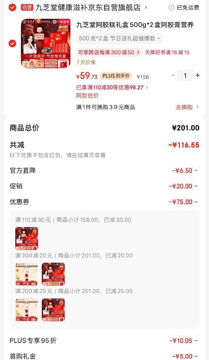 九芝堂阿胶糕礼盒500g*2盒💰59