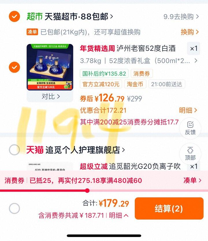 泸州老窖世家共赏礼盒52度500ml*2瓶丨119.4