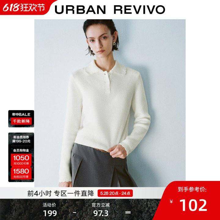 UR2025春季新款女装复古休闲简约短款翻领内搭针织衫UYY950014