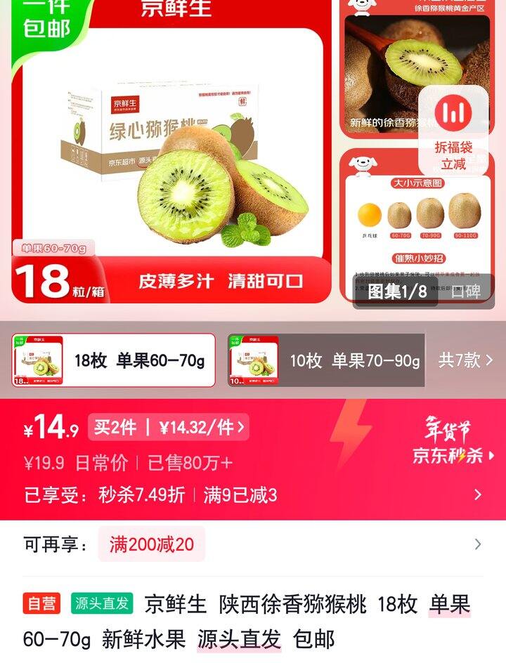 京鲜生陕西徐香猕猴桃 【14.9】
