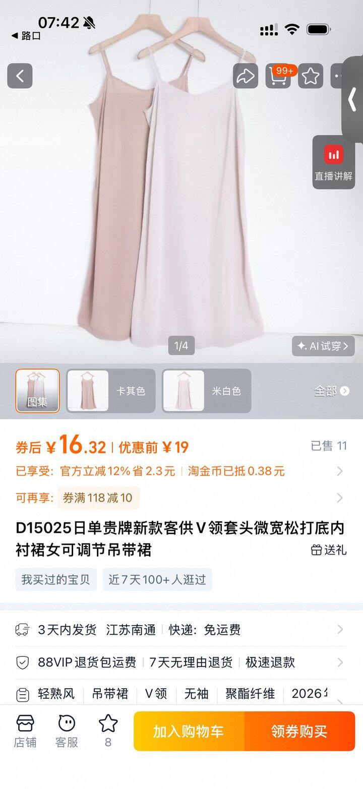 这个mila裙子的里吊带