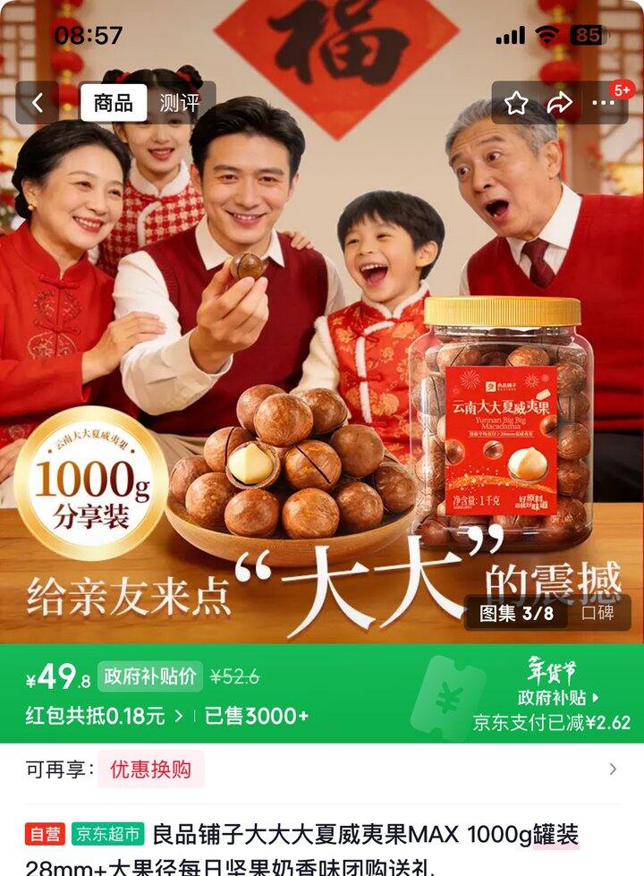 恰恰夏威夷果21.9/罐,良品铺子大大大夏威夷果49.8/2斤
