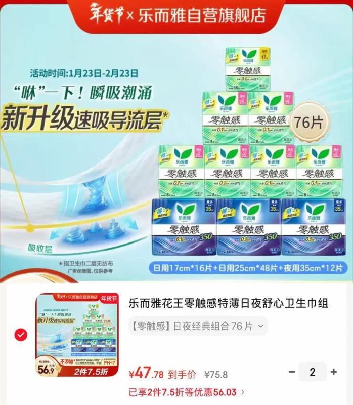 [狗]自营花王乐而雅零触感卫生巾