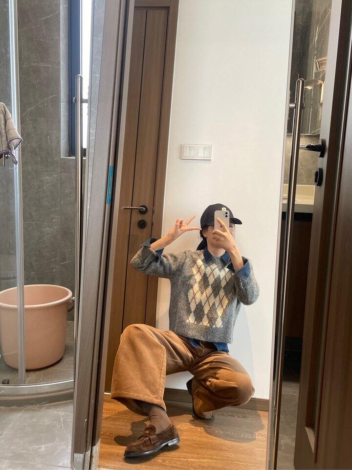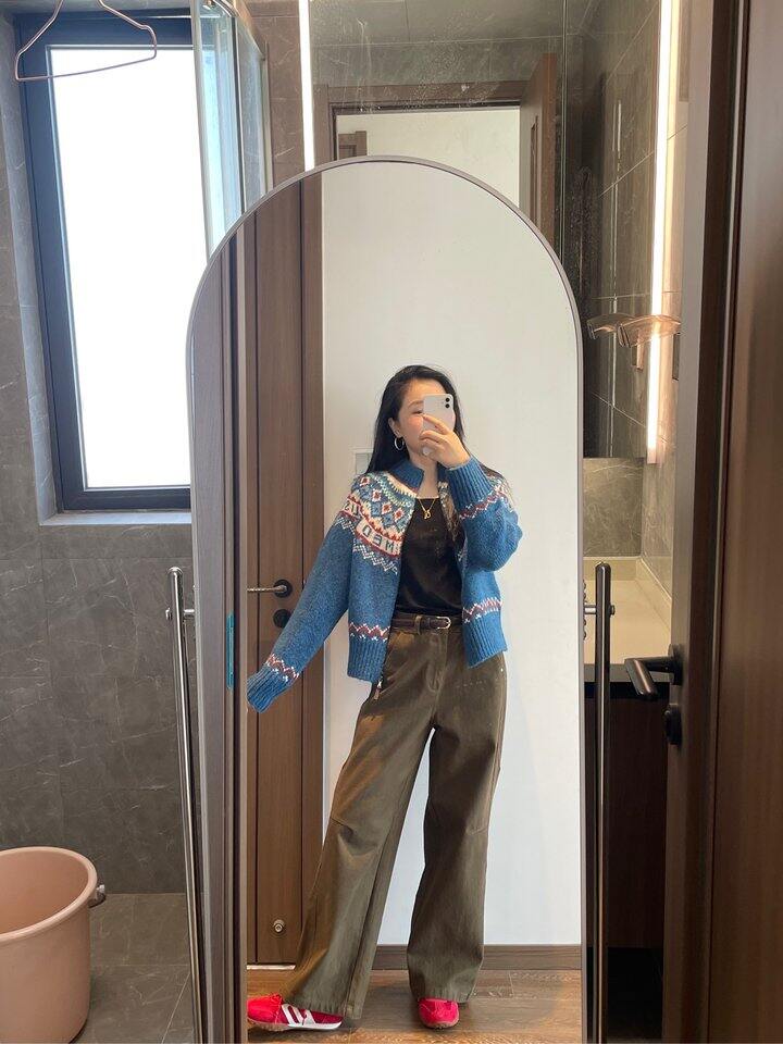 分享两件适合搭配棕色裤子的费尔岛毛衣。